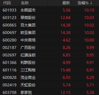 零售板块多股涨停